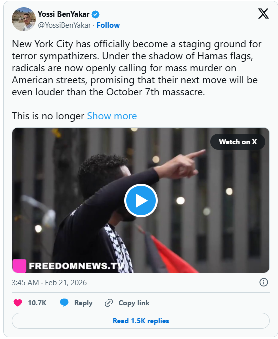 [image: image.png] More Here: jihadwatch.org/2026/02/new-york-city-muslim-crowd-calls-for-new-stronger-october-7-jihad-massacre THESE LINKS ARE DECIDED TO BE ACCURATE BY YOU AND NOT BY THE PROPHETIC NEWS SERVICE by MESSIAH’S BRANCH which is an independent NEWS & RESEARCH MINISTRY FUNDED only by your kind donations, ANY SIZE DONATION HELPS GREATLY! Please go here to donate! prophecyhour.com/donations/ WE ALSO HAVE A MISSION CHURCH…