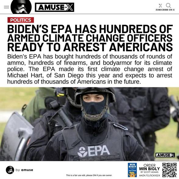 *DOGE:* Biden created an armed army within the EPA. The folks at DOGE ought to consider disbanding and selling off their weapons – big savings could be had.