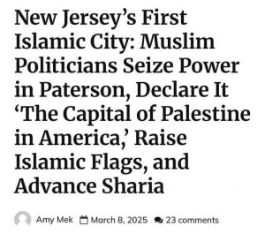 *Shocking news out of Paterson, NJ: Muslim politicians have reportedly seized power, declared the city “The Capital of Palestine in America,” raised Islamic flags, and are pushing Sharia law. This is a direct threat to our constitutional values and national unity. We cannot allow the erosion of American principles under the guise of diversity. How can we protect our legal and cultural identity while ensuring this doesn’t spread? 🇺🇸 #AmericaFirst #PatersonNJ #ShariaLawConcerns*