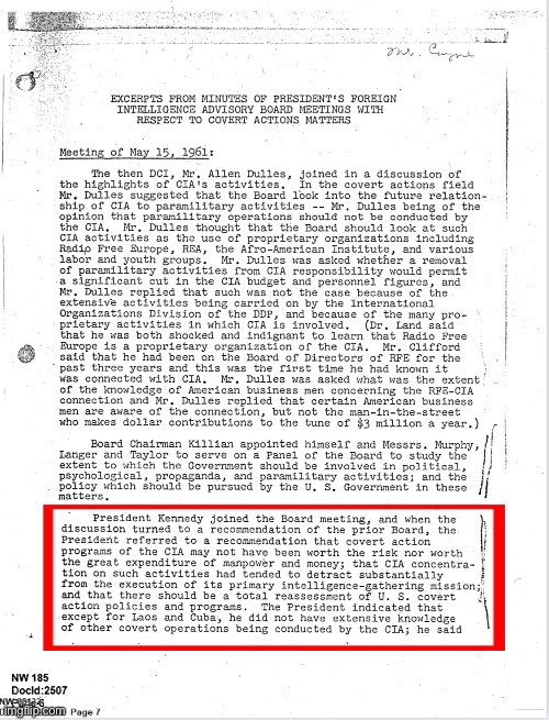 The JFK files are less about JFK’s assassination, and more so an accumulation of evidence that the CIA are NOT carrying out their primary mission of “intelligence-gathering”, and instead are focused on regime change around the globe. JFK found out, and they didn’t like that. JFK uncovered that the CIA were NOT serving the American People, and were only serving their own personal interests, which was mostly global domination via espionage and covert operations. JFK found out the CIA were essentially trying to take over the world, and he tried to stop them.