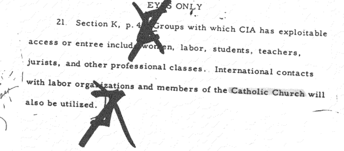*JFK files reveal the CIA saw the Roman Catholic Church as a key asset in its propaganda network, claiming “exploitable access” to its inner workings. The CIA exploited women, labor, students, teachers, and others.*