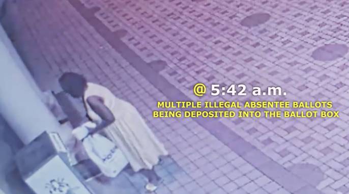The video on the Gomes campaign’s Facebook page shows a woman dropping stacks of ‘illegal’ ballots into an absentee ballot box outside the Bridgeport government center, where the city’s Registrar of Voters office is located.