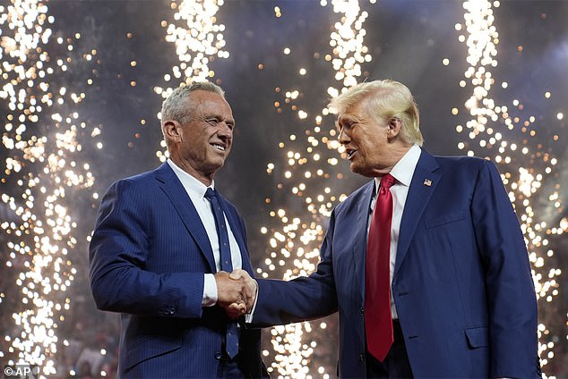 *[image: President Donald Trump nominated Kennedy to head the HHS. The pair are pictured above at a campaign rally in Arizona in August last year]*