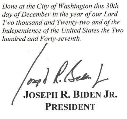 [image: Close-up of a document with a signature, possibly auto-signed by a key aide of former President Joe Biden]