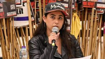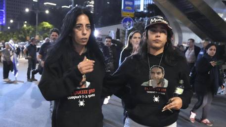 [image: אילנה גריצ’בסקי בהפגנה להחזרת החטופים ברחוב בגין בתל אביב]