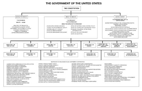 All of which is awkward. It is impossible to get around this US government organizational chart <www.usgovernmentmanual.gov/ReadLibraryItem.ashx?SFN=Myz95sTyO4rJRM/nhIRwSw==&SF=VHhnJrOeEAnGaa/rtk/JOg==>. All but a handful of agencies live under the category of the executive branch. Article 2, Section 1, says: “The executive Power shall be vested in a President of the United States of America.”