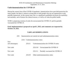 *At the meeting, the Committee discussed new categories of “ICD-10” codes that the CDC’s National Center for Health Statistics (NCHS) wanted to create to mark people as “Unvaccinated for COVID-19,” “Partially Vaccinated for COVID-19” and “Other underimmunization status.”*