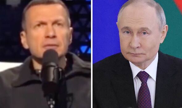 But on Russia <www.express.co.uk/latest/russia>-1, notorious Putin ally Vladimir Solovyov accused Britain of supplying the explosives used in the attacks. Speaking to ammunition expert Andrei Klintsevich, he posed what he called the “big question”: where had the material come from?