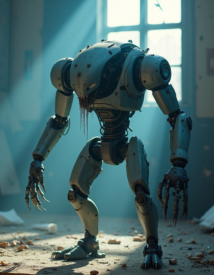 *The two are chatting away when, all of a sudden, the automated biped goes berserk, flailing its arms and legs about in a spectacle that evokes a failed prototype from the “Robocop” movies.*