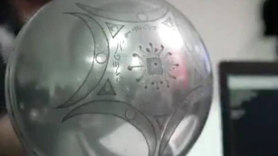 The silver orb weighs about 4.5 lbs, and it contains a series of ancient inscriptions on it.