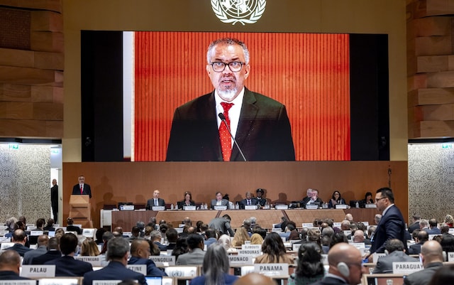 [image: Tedros Ghebreyesus, the WHO’s director-general, hailed the treaty during a speech to delegates at a health summit in Geneva]