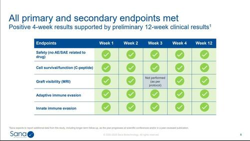 *A recent presentation by Sana shows the results of this experiment so far. The C-peptide mentioned there is a biomarker of insulin production.*