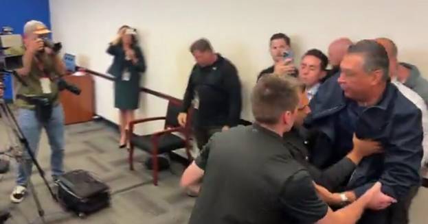 “From a law enforcement perspective, we’re really looking at three separate incidents that happened within a short period of time,” Campbell explained. “First, you have the DHS secretary who was addressing the press. This was not a Q&A period, and she was interrupted. She was interrupted by someone who was speaking very loudly. And so her security detail confronts what we obviously now know to be the senator. And at that point, he is now going to be escorted out. You can’t interrupt something like that that’s already in progress without having those consequences.
