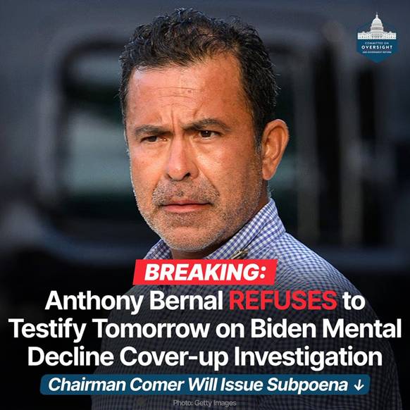 *“Now that the White House has waived executive privilege, it’s abundantly clear that Anthony Bernal – Jill Biden’s so-called ‘work husband’ – never intended to be transparent about Joe Biden’s cognitive decline and the ensuing cover-up. With no privilege left to hide behind, Mr. Bernal is now running scared, desperate to bury the truth. The American people deserve answers and accountability, and the Oversight Committee will not tolerate this obstruction. I will promptly issue a subpoena to compel Anthony Bernal’s testimony before the Committee,” the Oversight Committee said.*