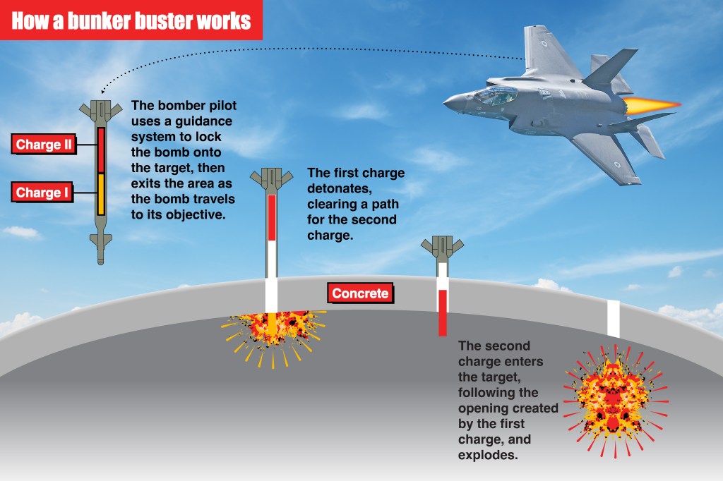[image: Illustration of how a bunker buster bomb works.]