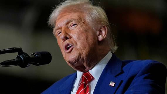 [image: President Donald Trump in red tie speaking]