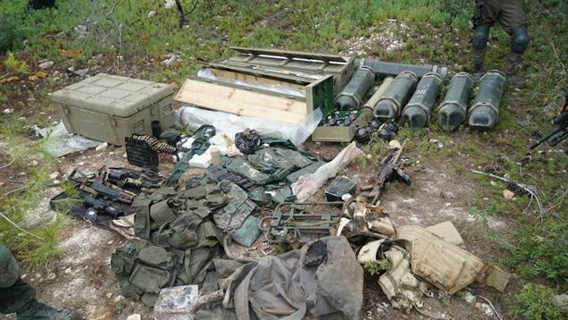 [image: Hezbollah weapons cache located near a UNIFIL post by IDF troops in southern Lebanon.]