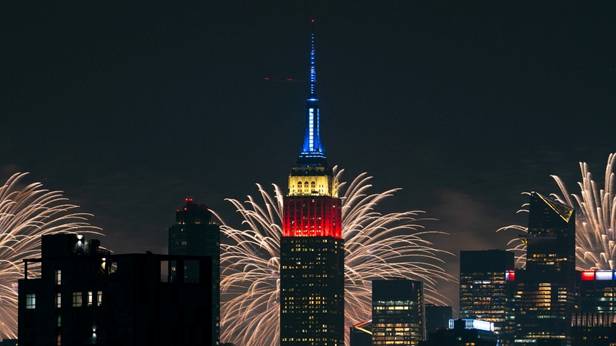 [image: The Macy’s 4th Of July fireworks show lights up the night sky as a backdrop to the Empire State Building on July 4, 2024 in New York City. The annual spectacle, lighting up the city since 1976, this time was launched from barges in the Hudson River, the first time in more than a decade not done from the East River.]
