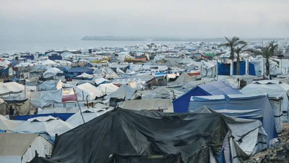 [image: PALESTINIANS SHELTER in tents in Gaza City. Civilians deserve a real choice – to remain amid crossfire and Hamas exploitation or to move temporarily to a secure area with access to food, water, shelter, and medical care, the writers argue.]