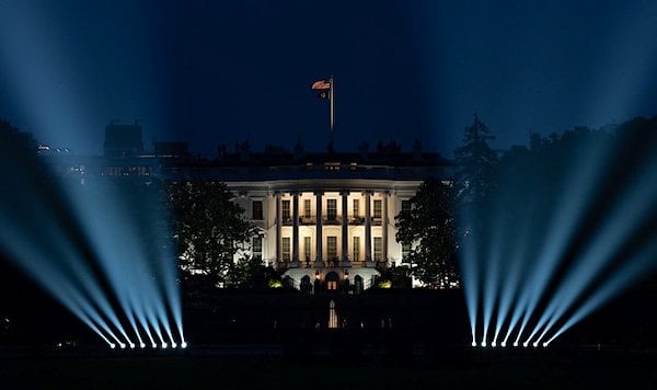 [image: The White House is lit up during the 250th Anniversary of the U.S. Army Grand Parade and Celebration takes place in Washington, D.C., Saturday, June 14, 2025. (Official White House photo by Andrea Hanks)]
