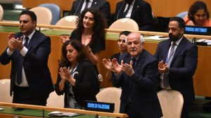 [image: Palestinian Ambassador to the United Nations Riyad Mansour (right) and the Palestinian delegation applaud a speech by French President Emmanuel Macron during the International Conference on the Peaceful Resolution of the Palestinian Question and the Implementation of the Two-State Solution at the United Nations (UN) headquarters in New York, New York, USA, on September 22, 2025. Photo: EPA/LUKAS COCH] THE NEWS FROM THESE LINKS ARE DECIDED TO BE ACCUARATE OR NOT BY YOU NOT BY THE PROPHETIC NEWS SERVICE by MESSIAH’S BRANCH which is an independent NEWS & RESEARCH MINSITRY FUNDED only by your kind donations, ANY SIZE DONATION HELPS GREATLY, Please go here to donate! prophecyhour.com/donations/ WE ALSO HAVE A MISSION CHURCH FOUND HERE wichitahomeless.com/