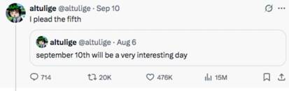 Another account that appears to be in a related subculture posted on August 6, “september 10th will be a very interesting day.”
