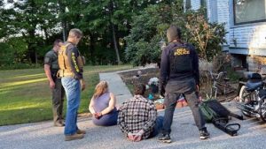 [image: DEA officers detain suspects outside Franklin, New Hampshire home in fentanyl trafficking case.]