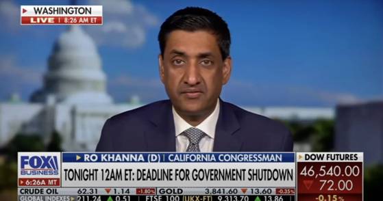 [image: Ro Khanna discussing the government shutdown deadline on Fox Business, with the U.S. Capitol in the background.]
