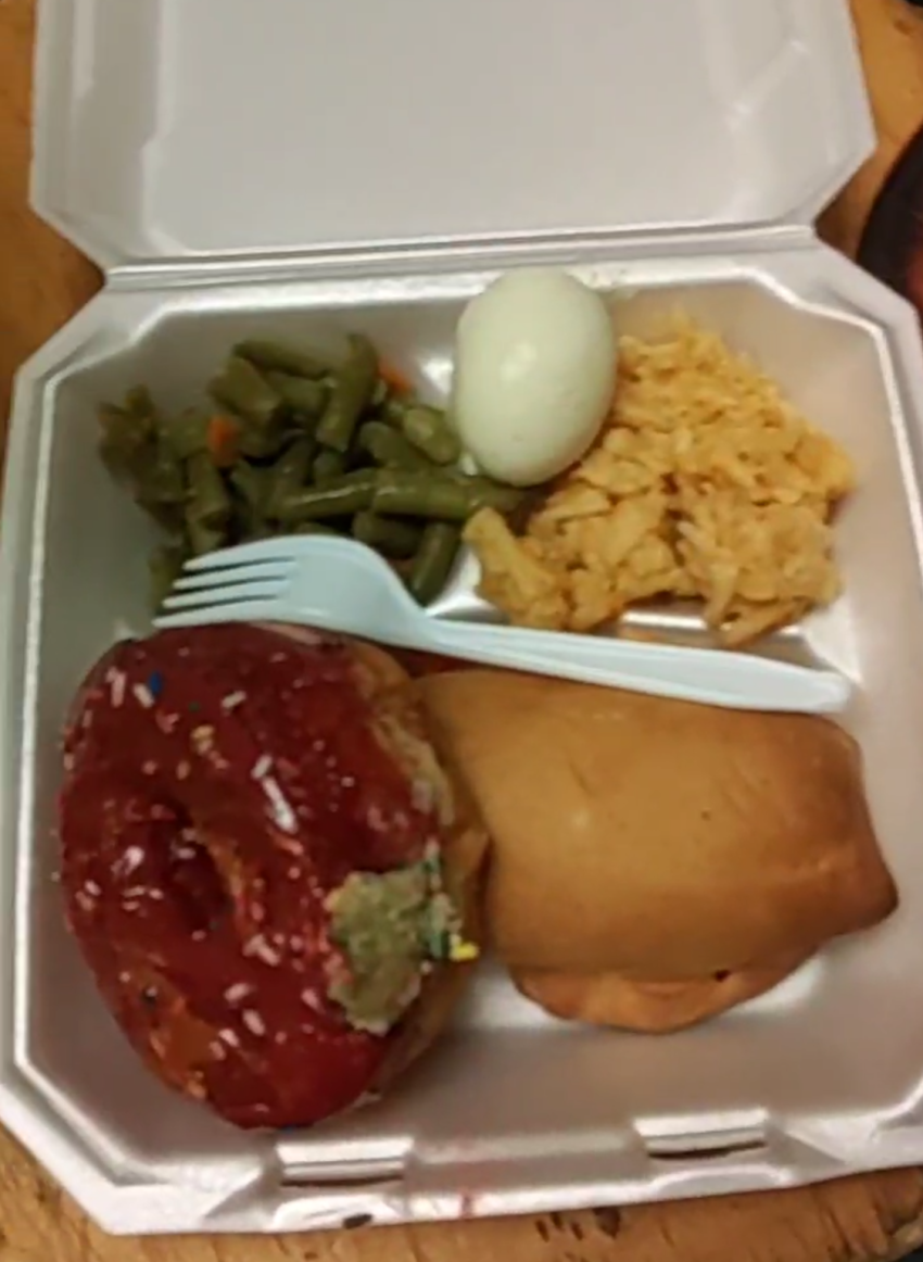Greetings Saints, Today Sister Linda prepared two full meals for dinner at the Mission. One of which included baked BBQ beans, mac and cheese, a boiled egg, and bread and butter. The other offered goulash with a choice of green beans & carrots or peaches, also served with bread & butter and a boiled egg….